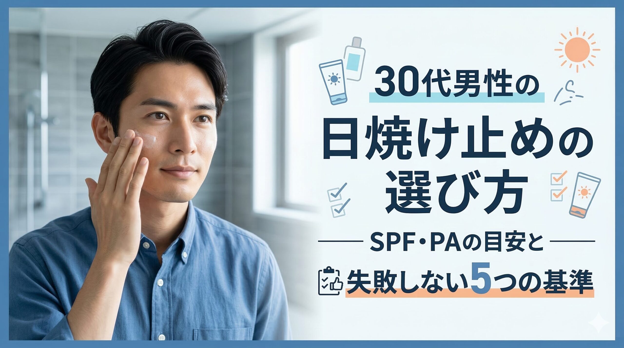 おすすめ記事 1 【NULLウォータープルーフ】日焼け止めを実際に使ってみた感想|汗に強いかレビュー 最新記事 シミ予防 30代男性の日焼け止めの選び方|SPF・PAの目安と「失敗しない5つの基準」 2026/3/16 シミ予防 日焼け止めは洗顔で落ちる?30代男性が「クレンジング不要か」を見分ける方法 2026/3/13 保湿 保湿って何を塗ればいい?30代男性向けに「化粧水・乳液・クリーム」の正解をわかりやすく解説 2026/3/13 シミ予防 日焼け止めは冬も必要?30代男性が「塗るべき日」と「いらない日」をわかりやすく解説 2026/3/10 シミ予防 毛穴開き 美容液は必要?いらない?30代男性の毛穴・シミ対策で失敗しない判断基準 2026/3/8 保湿 朝の洗顔は必要?ぬるま湯だけでOK?30代男性の毛穴・乾燥を増やさない正解 2026/3/8 シミ予防 日焼け止めが目にしみる原因と対策|30代男性が今日からできる塗り方 2026/3/8 毛穴開き 毛穴黒ずみ 毛穴対策は何から始める?30代男性向けに黒ずみ・開きの対策をわかりやすく解説 2026/3/8 保湿 クリームって必要?乳液だけではダメ?30代男性が使うべきケースをわかりやすく解説 2026/3/8 レビュー 毛穴黒ずみ 【EKATO】炭酸泡パック洗顔(WHITE SPA WASH)はどう?毛穴汚れは落ちる?実際に使ってみたレビュー 2026/3/8 Twitter