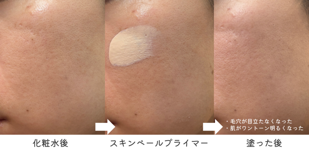 日焼け止めの効果も備えつつ、毛穴を隠して見た目を整えやすいアイテムでした。