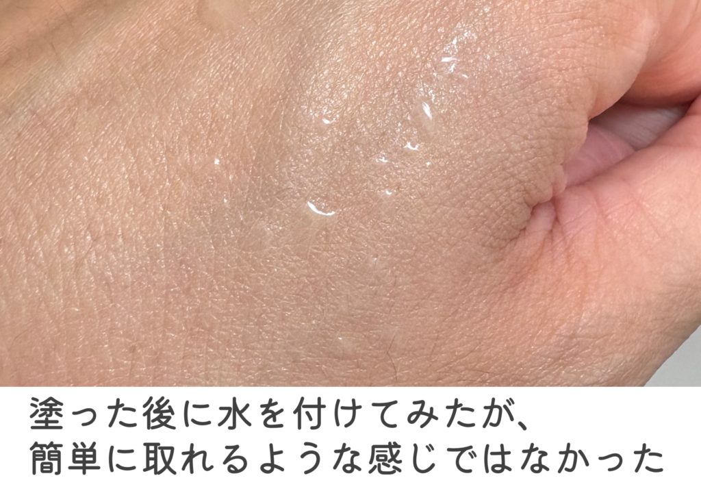 - 塗った直後:ベタつきがほぼなく、手もそこまで不快にならない