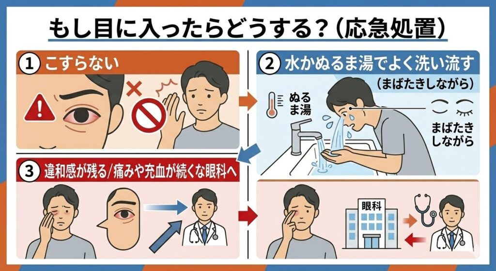 もし目に入ったらどうする?(応急処置)