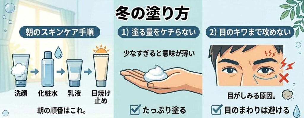 **毎朝の歯磨きと同じで“薄くでいいから塗る習慣”**にしてしまうのが一番ラクです。